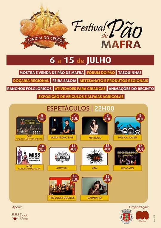 De 6 a 15 de julho, o Pão de Mafra é rei. Está de volta mais uma edição do Festival do Pão que visa divulgar e promover este alimento de excelência, bem como os produtos e tradições locais.