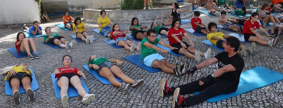 De volta à Residência por breves instantes, os participantes prepararam-se para a seguinte atividade: uma aula de pilates (com um twist). Foram recebidos pelo professor e coordenador do Gabinete de Desporto [GaD] do Politécnico de Santarém, Miguel Serra Silva. O GaD exerce as suas funções nos domínios da responsabilidade técnica e dos programas de atividade física e desportiva. Procura criar parcerias; uniformizar e divulgar toda a informação desportiva; organizar a Gala do Desporto; apoiar financeiramente atletas representantes do IPSantarém nas competições universitárias; e disponibiliza o Fitness Centre, de forma a complementar os processos inerentes ao treino. Finda a apresentação do Gabinete, Miguel Silva preparou os jovens para uma aula de pilates no mínimo singular. Com uma fusão de modalidades desportivas, o docente proporcionou uma tarde de música, de energia e de muitas gargalhadas.