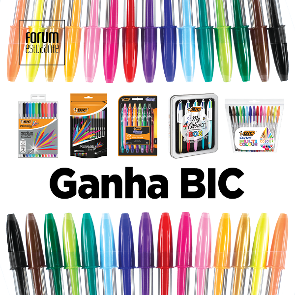 Porque queremos contribuir para o teu sucesso escolar, temos à tua disposição vários materiais, desde um conjunto de canetas de gel Gelocity 13 a um pack de 20 canetas de ponta fina Intensity fine 20. E ainda: um pack de 12 de canetas de ponta média Intensity médium 12, um pack de 15 canetas clássicas BIC Cristal com várias cores (Cristal Multicolour 15) e um My 4 Colours Box (caixa metálica com 5 esferográficas: 3 4 Color Shine de cores clássicas e 2 4 Color Fun em tons vivos). Segue a nossa conta no Instagram e descobre as condições de participação deste passatempo, clica aqui, consulta o regulamento e condições de participação, e participa. Porque queremos contribuir para o teu sucesso escolar, temos à tua disposição vários materiais BIC, desde um conjunto de canetas de gel Gelocity 13 a um pack de 20 canetas de ponta fina Intensity fine 20. E ainda: um pack de 12 de canetas de ponta média Intensity médium 12, um pack de 15 canetas clássicas BIC Cristal com várias cores (Cristal Multicolour 15) e um My 4 Colours Box (caixa metálica com 5 esferográficas: 3 4 Color Shine de cores clássicas e 2 BIC 4 Color Fun em tons vivos). Segue a nossa conta no Instagram e descobre as condições de participação deste passatempo, clica aqui, consulta o regulamento e condições de participação, e participa